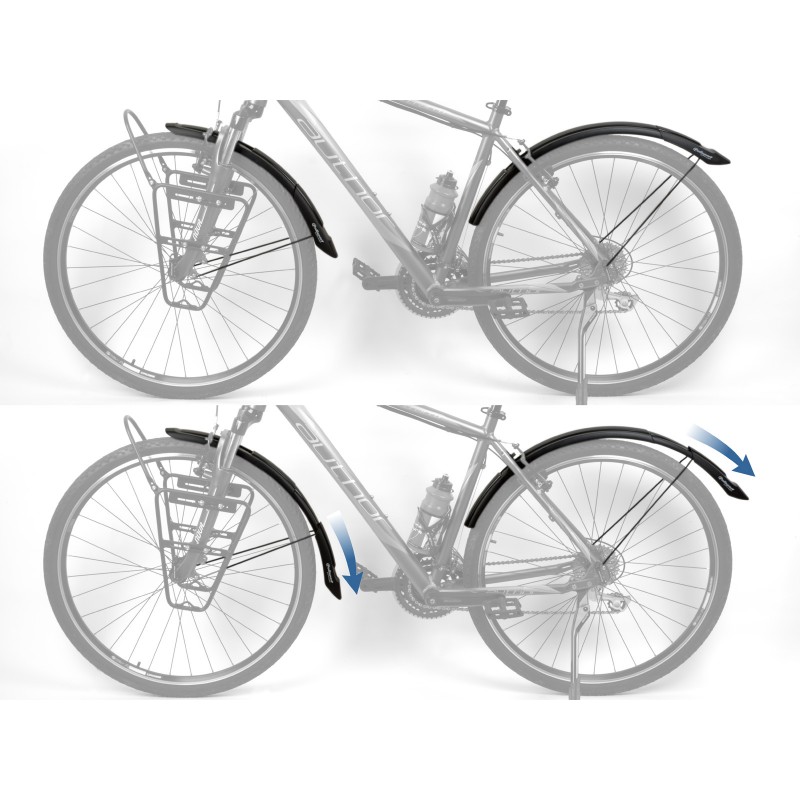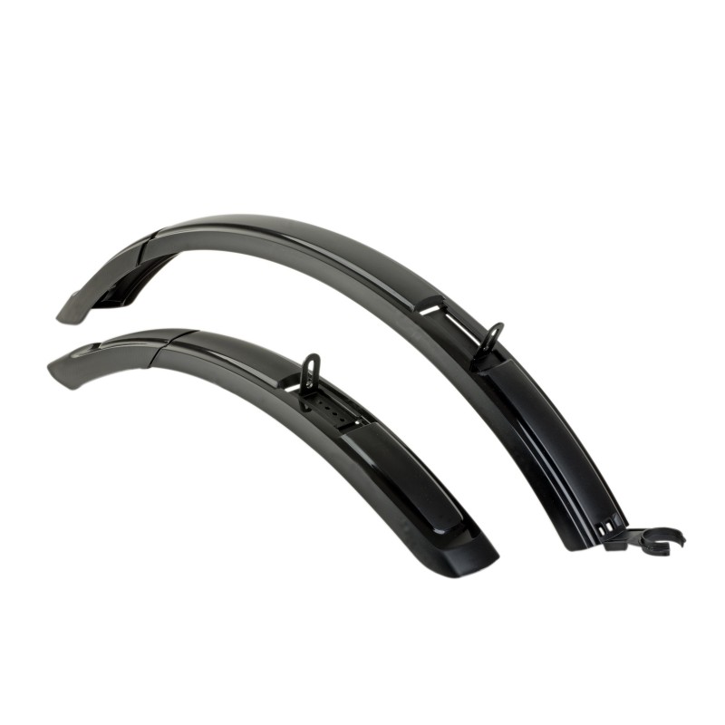 Sada blatníků AUTHOR City 60 je kompatibilní s většinou kol 700 C vybavených kotoučovými brzdami nebo V-Brakes a odpružením nebo pevnou vidlicí. Velikost a držáky lze snadno upravit tak, aby lépe vyhovovaly typu kola. Zadní blatník kombinuje 3 exkluzivní možnosti montáže pro zajištění univerzální montáže pro všechna kola. Šířka 60 mm, délka přední 585 - 705Příjemce :