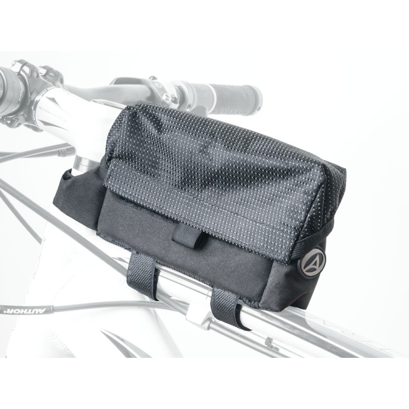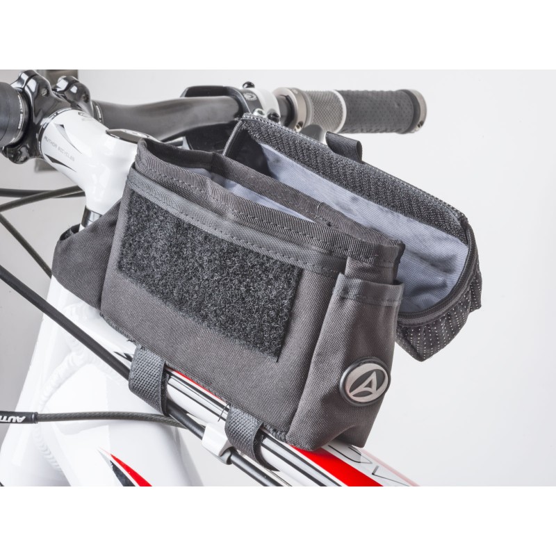 Nepromokavá brašna na horní rámovou trubku, univerzální uchycení pro většinu typů rámů, 3 samostatné polstrované kapsy. Rozměr l. 15 × š. 4 × v. 10 cm.