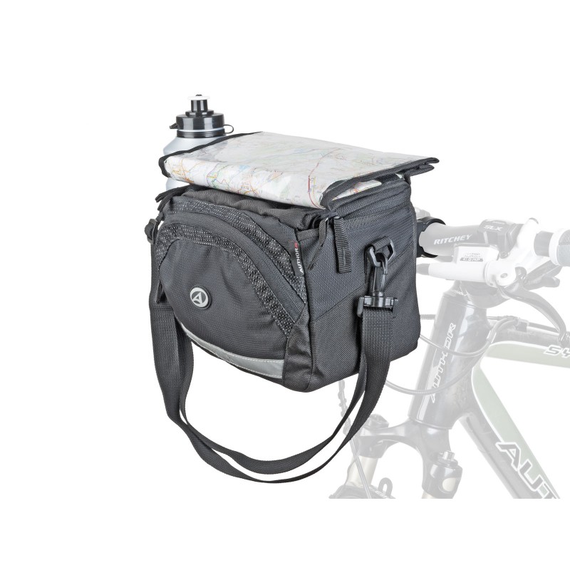 AUTHOR A-H735 je plně vybavená brašna na řídítka s držákem QRA™. Speciální pouzdro na mapu uchycené suchým zipem umožňuje jednoduchou manipulaci s mapou a čtení v ní. Na straně je umístěna universální kapsa se stahováním, do které je možné umístit láhev nebo třeba sbalit větrovku. V přední a horní části jsou samostatné kapsy na zip vhodné pro převoz nutných drobností. (peněženka, telefon, kapesníčky...). Konstrukce kombinuje panely vyztužené EVA pěnou s přizpůsobivou tkaninou pro dostatečnou pevnost brašny a ochranu převážených předmětů. Doporučujeme pro delší vyjížďky, výlety a cestování.