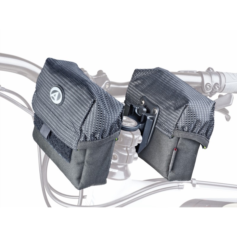 Brašna na představec, universální držák umožňuje velmi snadné sejmutí/ upevnění, 2 samostatné kapsy s podšívkou z nepromokavého materiálu. Rozměry (d × š × v) 12,5 × 9 × 4 cm, objem 2× 0,75 l.Příjemce :