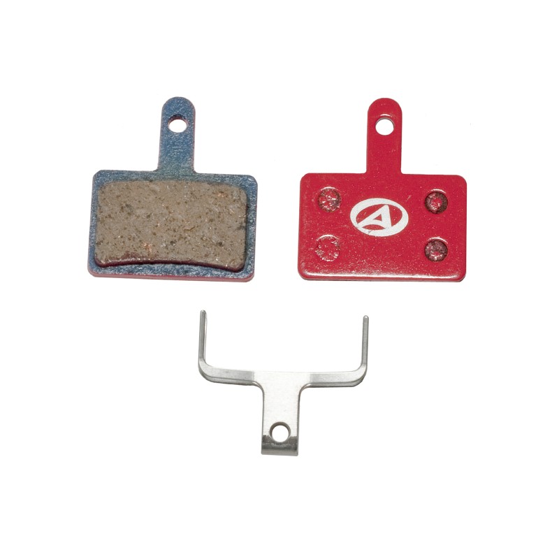 Brzdové destičky semi-metalické; kompatibilní s brzdami Shimano C501, M575, M525, M495, M486, M485, M475, M465, M447, M446, M445, M416, M416A, M415, M4050, M3050, M395, M375, M365, M355, M315, T675, T615, TX805, MT500, MT410, MT400, MT200, UR300; součástí balení pružinka.