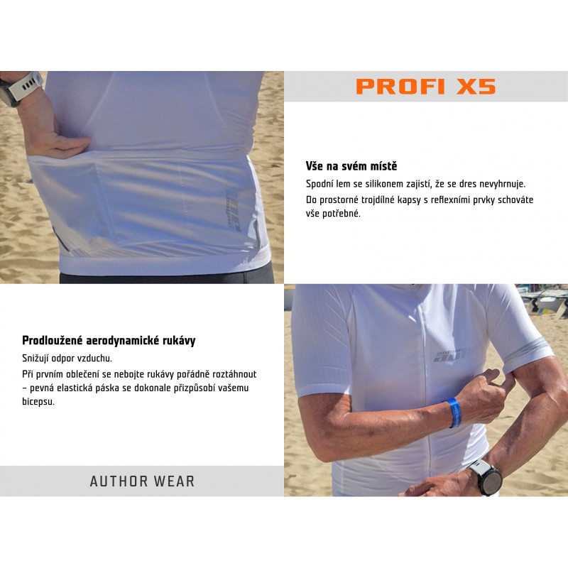 AUTHOR Profi X5 Stripes: Vaše nová úroveň oblečení. Hledáte dokonalou rovnováhu mezi rychlostí a pohodlím?Dres Profi X5 Stripes je stvořen pro cyklisty, kteří chtějí profi technologie v provedení, které skvěle sedne každé postavě. Je to ideální dres pro klubové švihy, náročné závody i celodenní výzvy typu Gran Fondo. Pocit lehkosti: Díky kombinaci elastických mPříjemce :