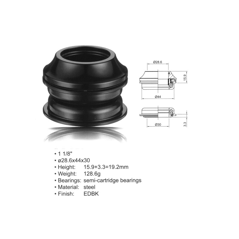 * 1 1/8"; d. 28.6x44x30; H:15.9+3.3=19.2mm, * Materiál: ocel * kuličkové ložisko