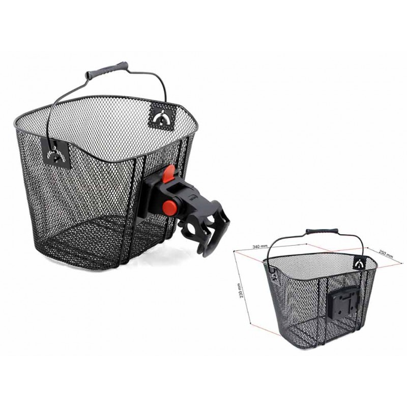 Košík na řídítka, jednoduchá montáž držáku QRB na průměr řídítek 25,4 nebo 31,8mm, nastavitelný úhel sklonu, včetně držáku QRB, nosnost max. 5kg, samostatný držák = položka #15 003 904. Tento koš vyžaduje odbornou montáž.
