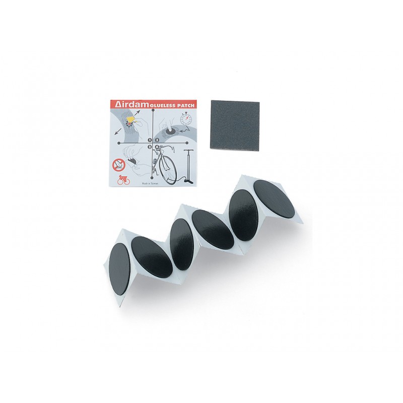 Sada obsahuje 6 samolepicích záplat a zdrsňovač, velmi rychlé a jednoduché použití, miniaturní skladné balení, vhodné pro všechny typy veloduší.Příjemce :