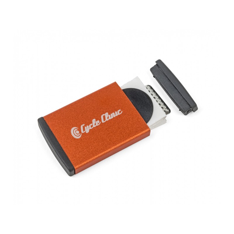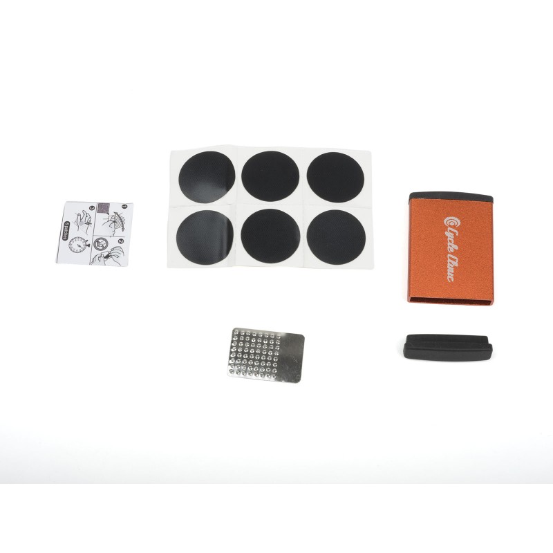 Samolepicí záplaty které se snadno přizpůsobí veloduši. Bezproblémová aplikace, vodotěsné pouzdro ochrání záplaty před poškozením. Očistěte duši, nalepte záplatu a pokračujte v bezstarostné jízdě. 6 záplat a AL zdrsňovač v malém vodotěsném AL pouzdru.Příjemce :