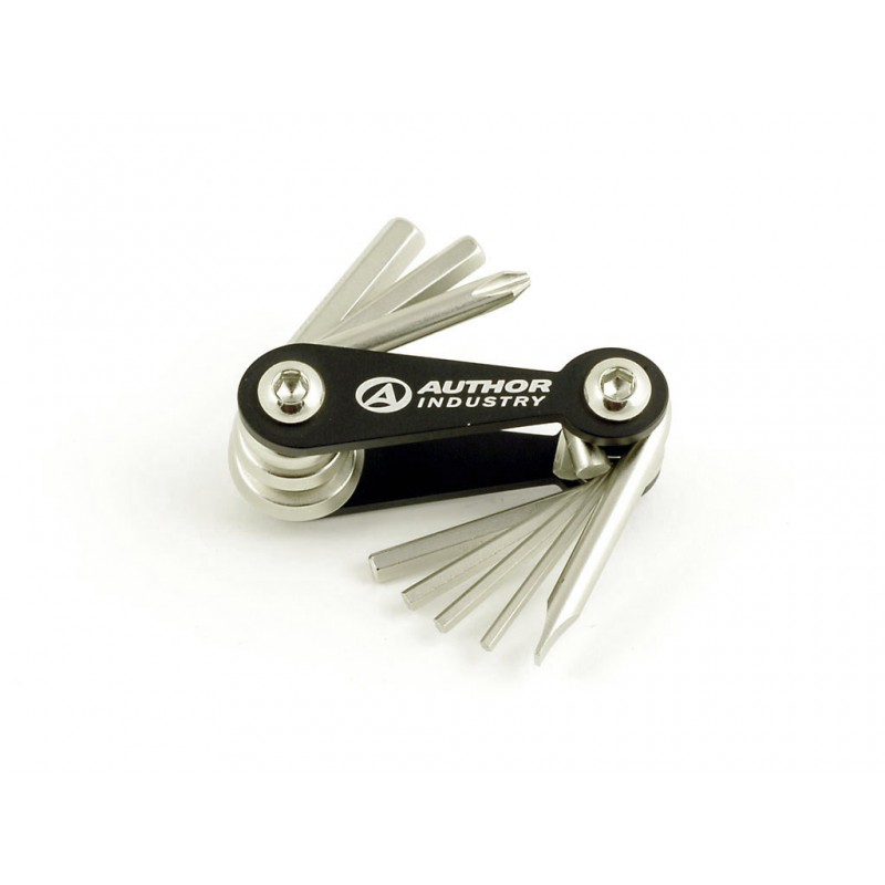Nářadí AUTHOR Expert 8 Inbusy: 2 / 2.5 / 3 / 4 / 5 / 6 mm. Šroubováky: Phillips PH2 / SL5. Materiál: Cr-V tvrzená ocel. Duralové tělo. Velikost (složené): l.60 mm x š.28 mm x h.18 mm. Hmotnost: 92 g.Příjemce :