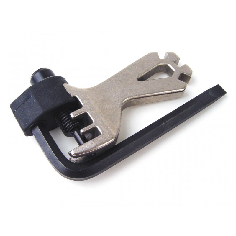 Univerzální nýtovač na řetězy UG, HG, IG, šroubovák rovný, imbus klíč 5, centrovací klíče pro 0,127"/ 0,130"/ 0,136", hmotnost 78 g.Příjemce :