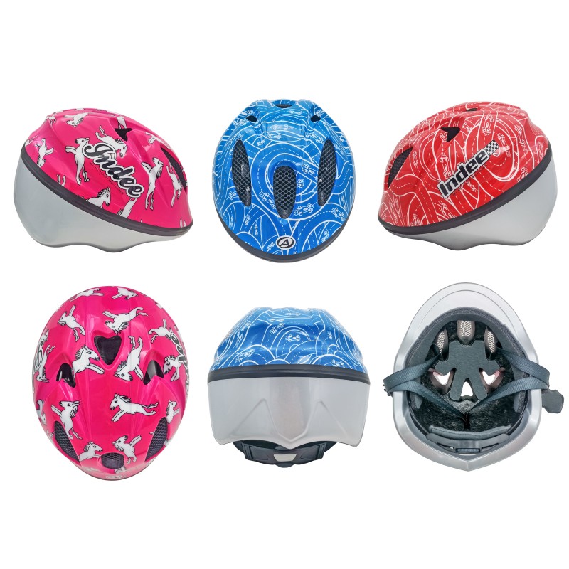 Dětská přilba AUTHOR Indee s jednoduchým nastavením upínacího systému a popruhů. Určena pro nejmenší děti přepravované v sedačce nebo vozíku, nebo pro záčátky na odrážedle a kole.