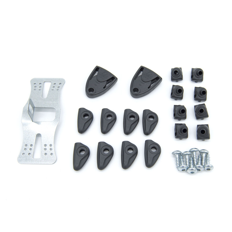 Sada obsahuje plastové úchyty a šroubky na jeden bicykl, tzn. pro dva blatníky a dále můstek pro zadní blatník.