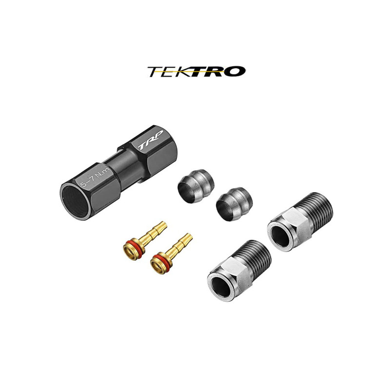 Združovač brzdových hadic 5,0mm Tektro a TRP. V balení 2ks oliva, koncová vložka a matice. Při použití zdužovače můžete snadno oddělit řídítka s brzdovou hadicí od zbytku hadice vedené v rámu, takže není potřeba odmotávat omotávku u silničních a gravelových kol.Příjemce :