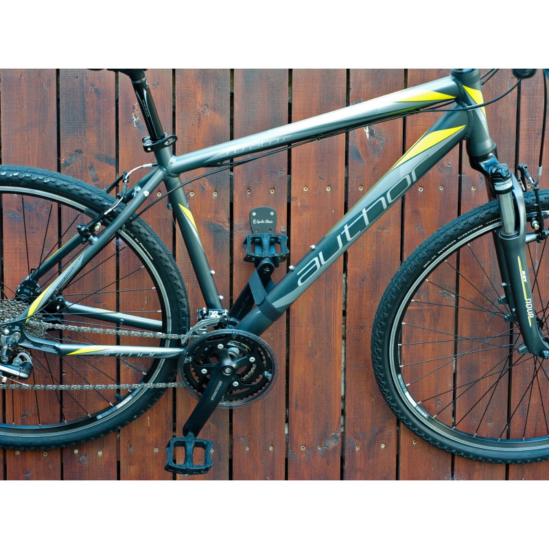 Univerzální držák k zavěšení jízdních kol všech typů na zeď za pedál..