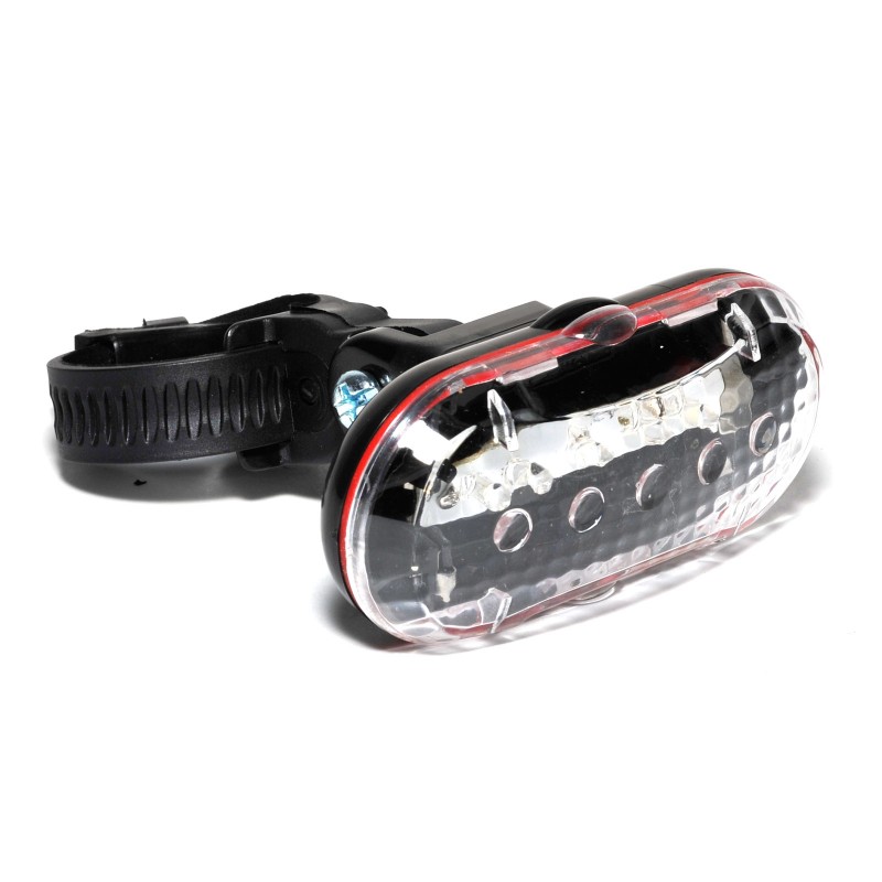 Přední světlo, 5 LED. Zdroj 2× LR06 (AA) baterie (nejsou přiloženy). Univerzální uchycení elastickým řemínkem na všechny průměry a tvary řídítek. Režim blikání a konstantního svícení.