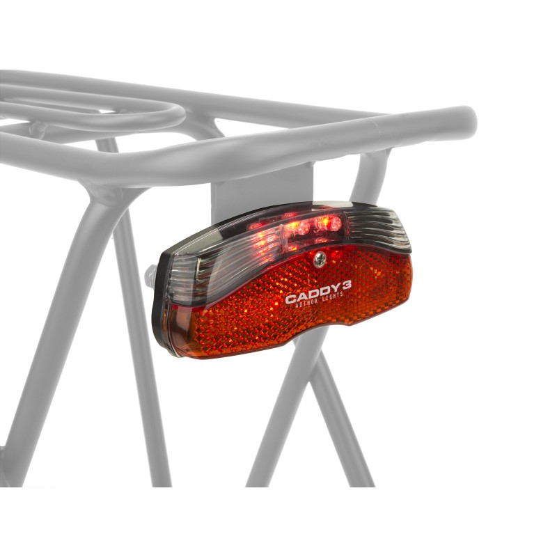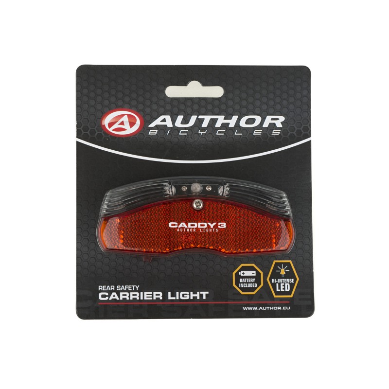 Zadní světlo Author caddy 3, 3 červené LED diody. Zdroj 2x AAA alkalické baterie (jsou přiloženy). Pouze režim konstantní svícení 50h. Stranová viditelnost 180st., uchycení 2 šrouby M5 (rozteč šroubů 80 nebo 50mm - viz. foto, nutno vyvrtat) na držák odrazky na nosiči.Příjemce :
